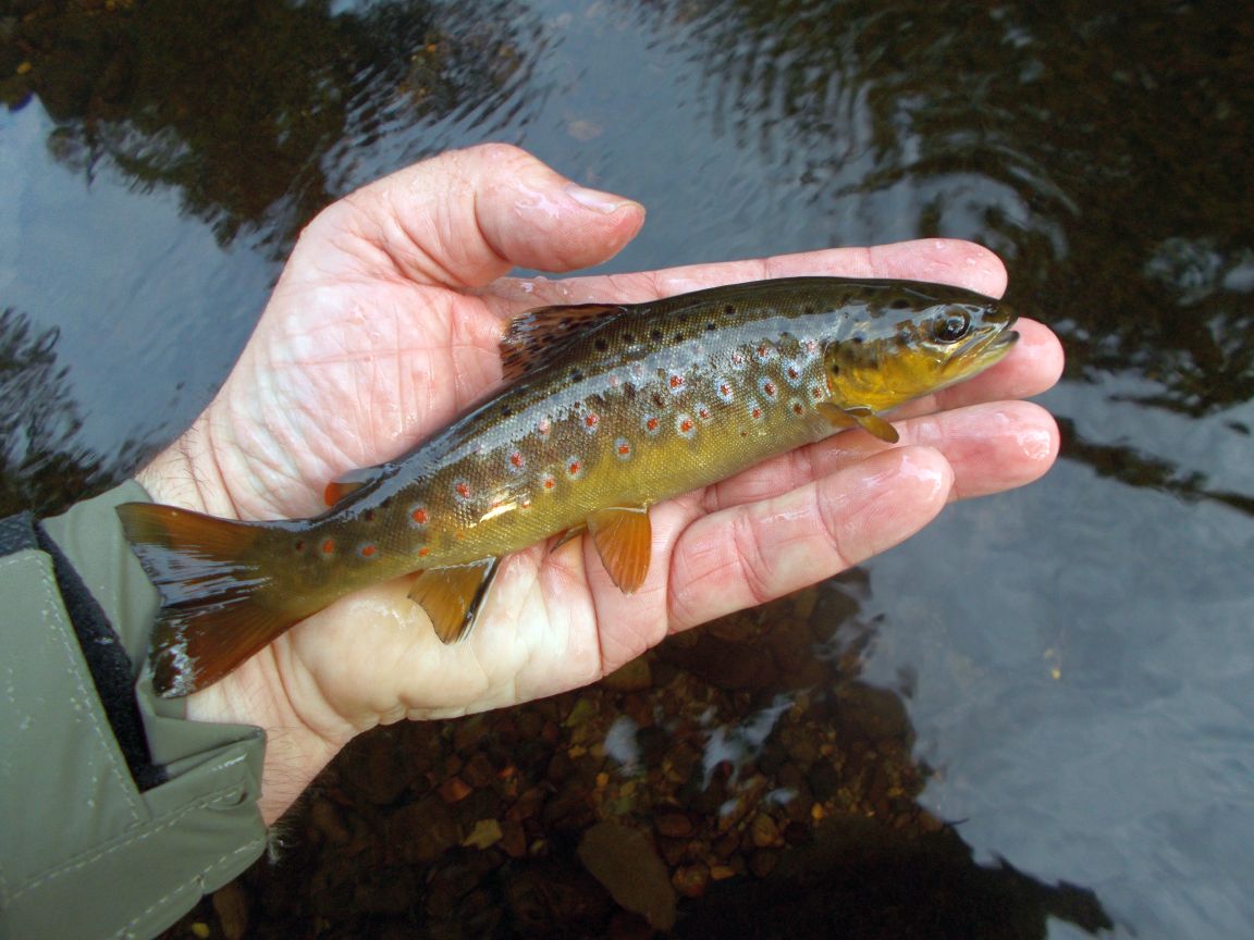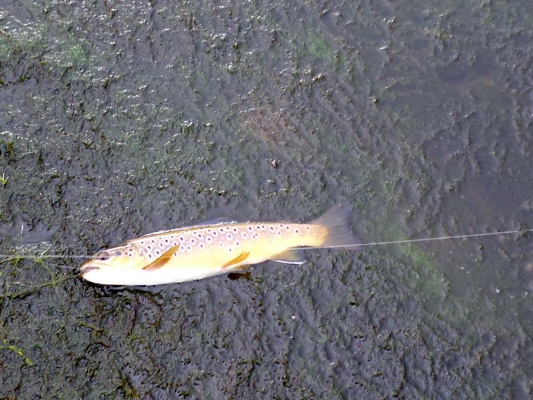 I was out on the Fossoway beats at the weekend, Friday evening despite the rain being excellent ………… I spied two specimen fish but had to satisfy myself with numerous wee hard fighting brownies such as this fella