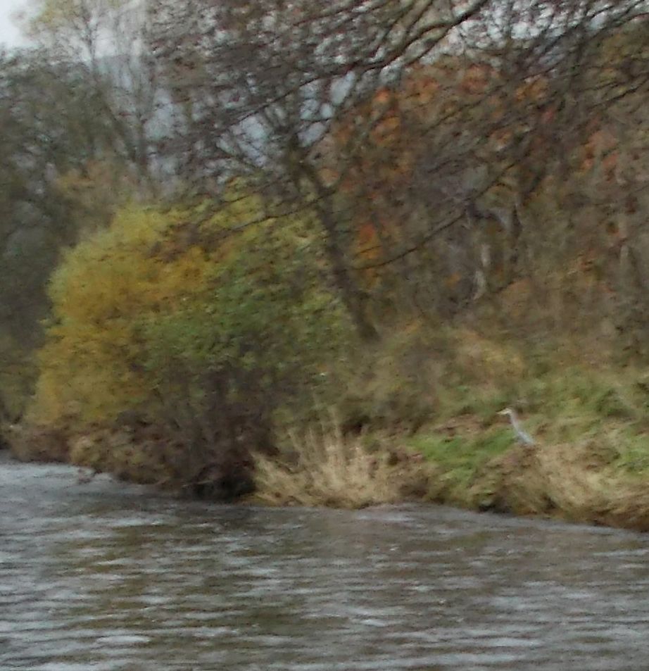 Downstream at the bottom of a long pool a heron sat patiently waiting for a bite himself; it wasn’t have much luck either. In the time it took me to cover the pool, a huge brownie had risen a four or five times and three fresh fish jumped for joy right in front of his beak (I guess they had just forced their way up the long riffle below the pool)