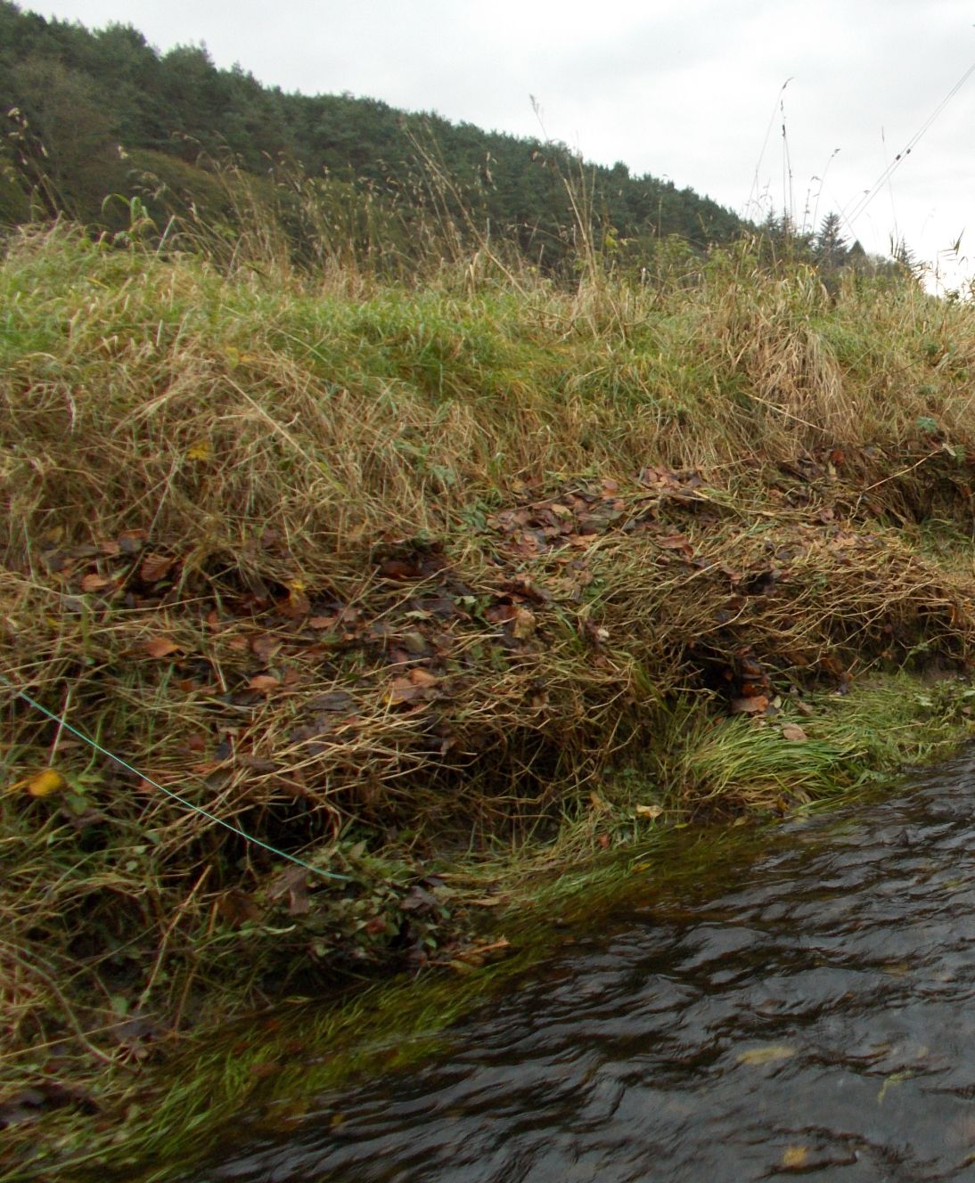The rain had arrived properly over the previous week creating the first big spate leaving debris high up the bank: