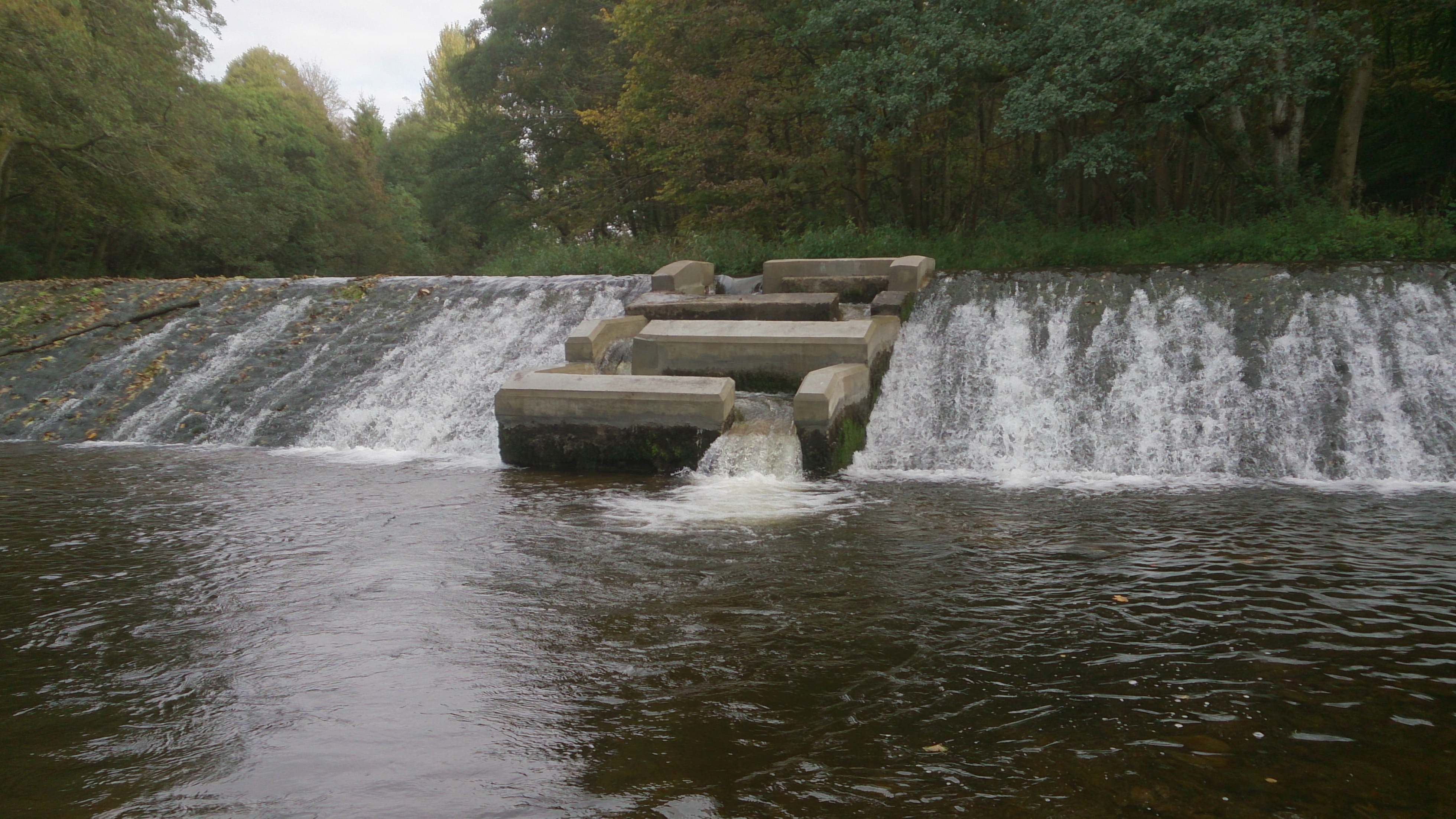 The latter taken on completion of the works where the main flow is being directed through the fish pass: