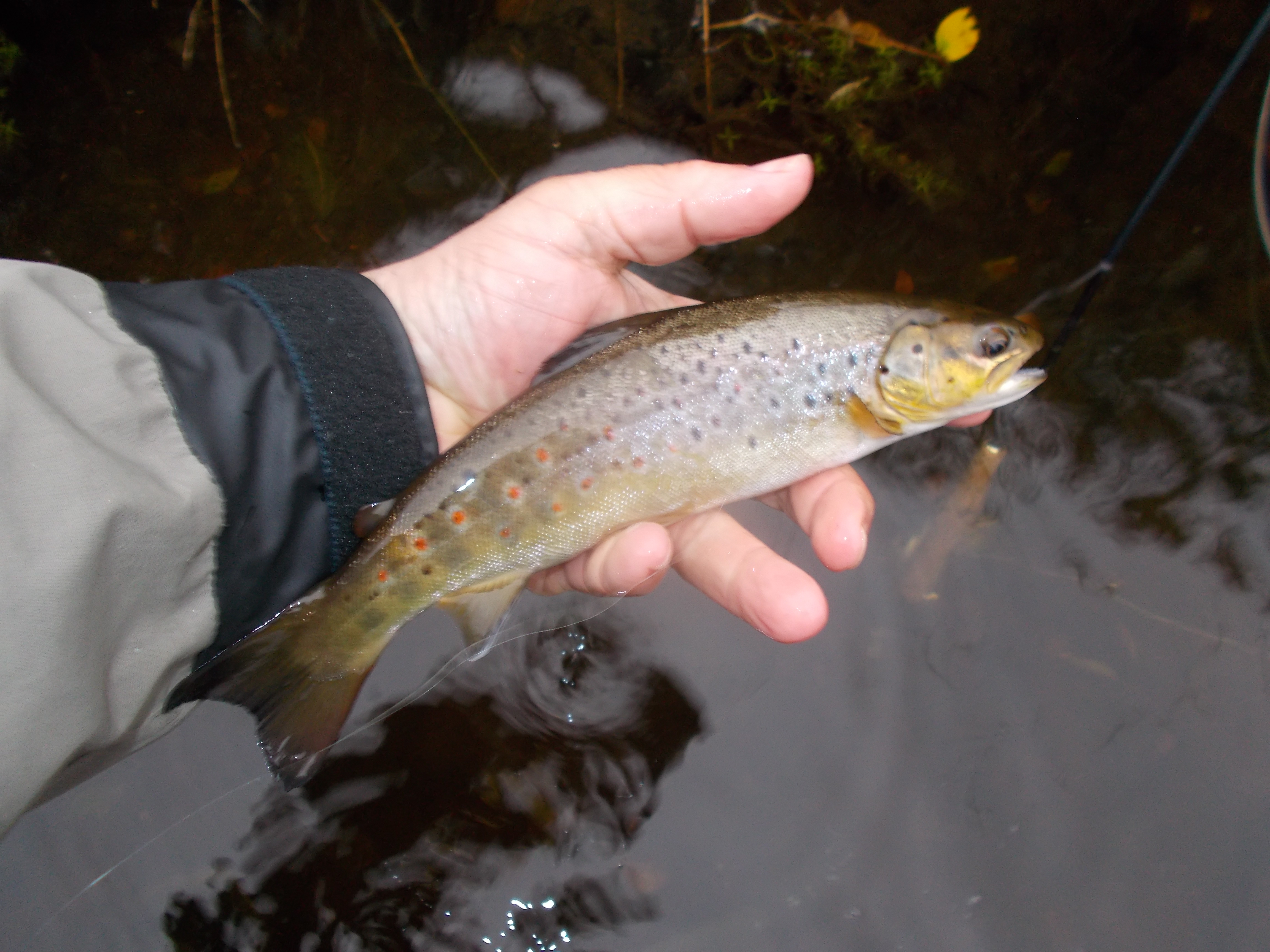 My final trout of the season, no monster but decent sport on a 8′ 4# rod