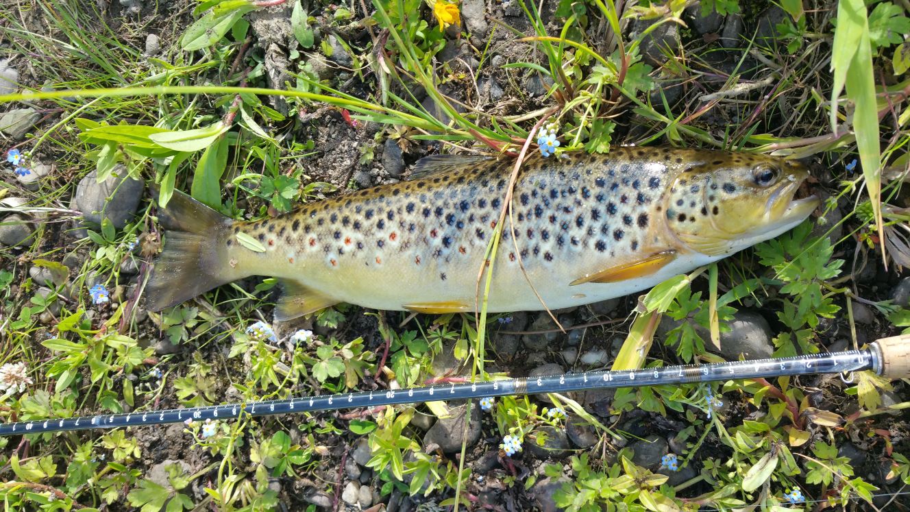 Find that every pool holds at least one big fish, much larger than the rest. Caught another 17″ trout yesterday and got broken by something huge. French nymphing on the bottom gets the bigger ones instead of the wee kamikaze fish. Not seen any salmon or seatrout yet, but they must be there after all the rain we’ve had. Tight lines.