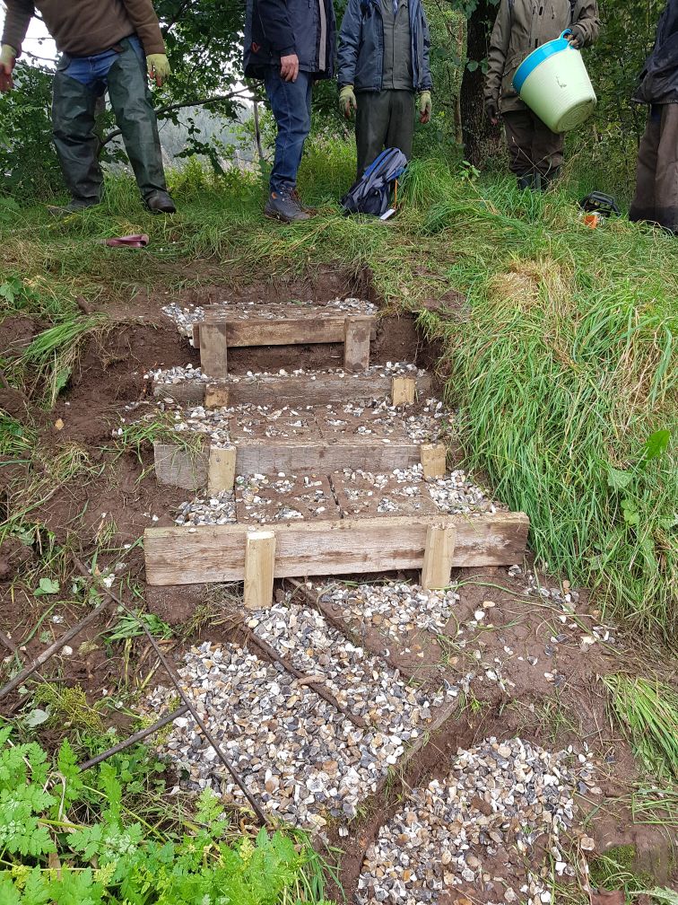 Over recent months quite apart from the endless strimming to maintain footpaths along the river and at Glenquey, the work parties have been busy making improvements for access including installing steps, building stiles etc.