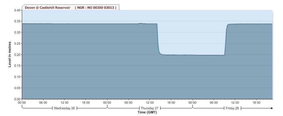 This year Scottish Water have began generating hydro-electric power at Castlehill Reservoir. When generating they are releasing significantly more water than the standard compensation flows. This is the SEPA gauge reading from yesterday:
